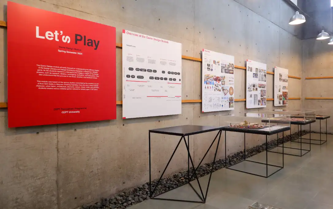 Let’s Play was an exhibition hosted by the CEPT Foundation Programme, showcasing tabletop games designed by students as part of a Game Design module. Drawing inspiration from their immersive study in Varanasi, the games reflected the city's spatial and cultural nuances. Through a non-linear, feedback-driven design process, students explored research, ideation, prototyping, and articulation to develop engaging games for young adults.