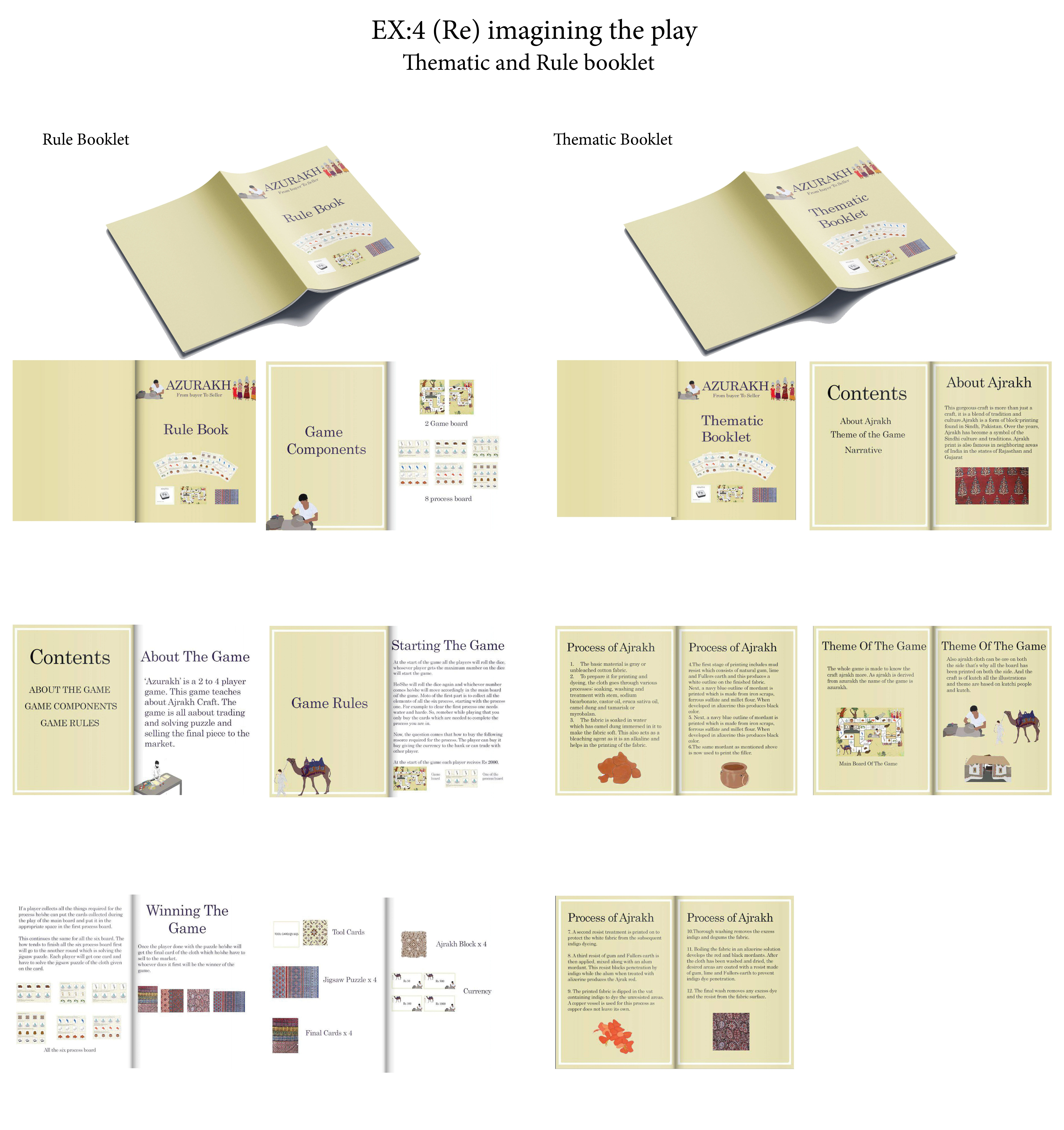 (Re) imagining the play was all about designing the game for kids and one of the most important component of the game was thematic booklet which have information about the craft chosen and rule book which have rules written to it.