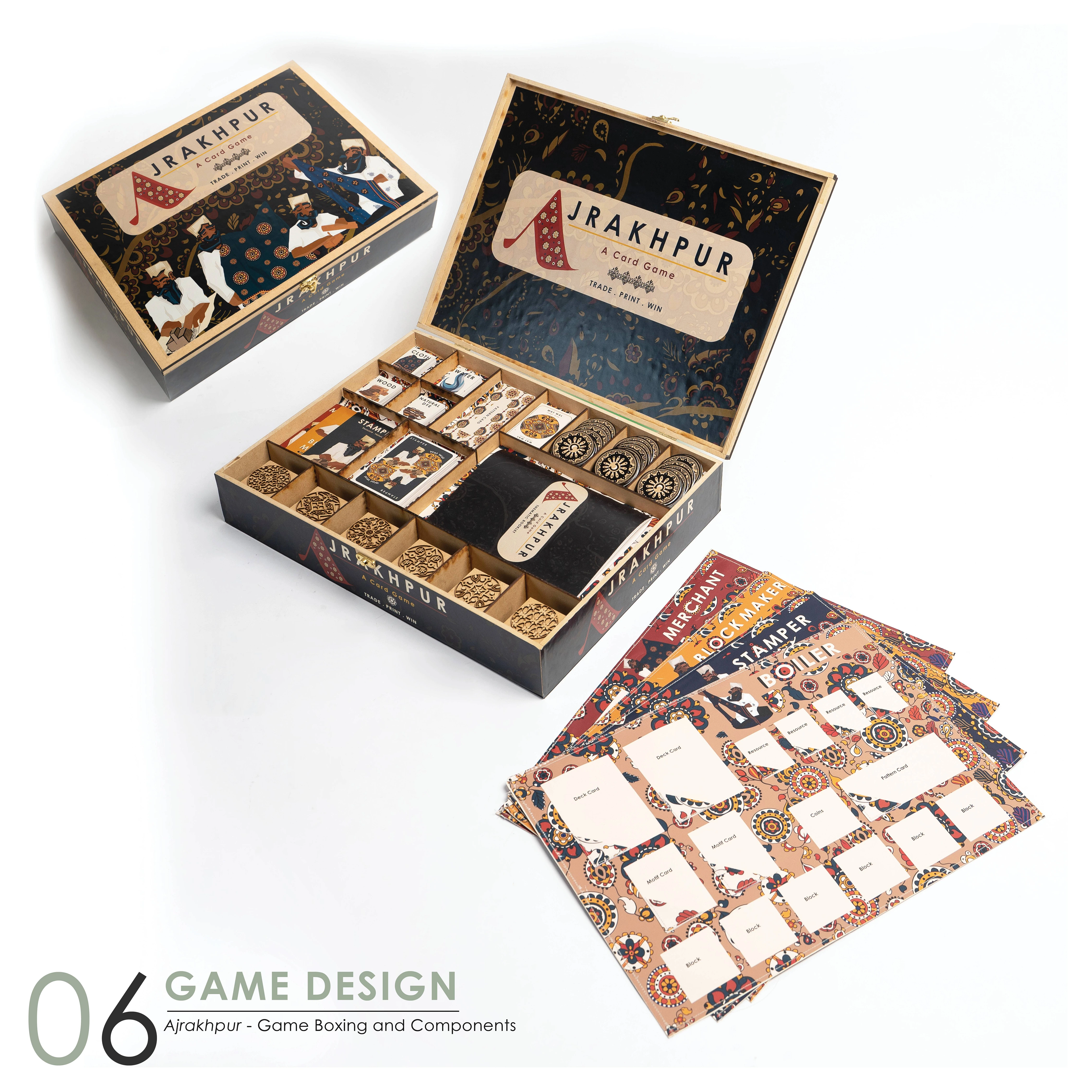 Ajrakhpur' - box design, branding and components.
