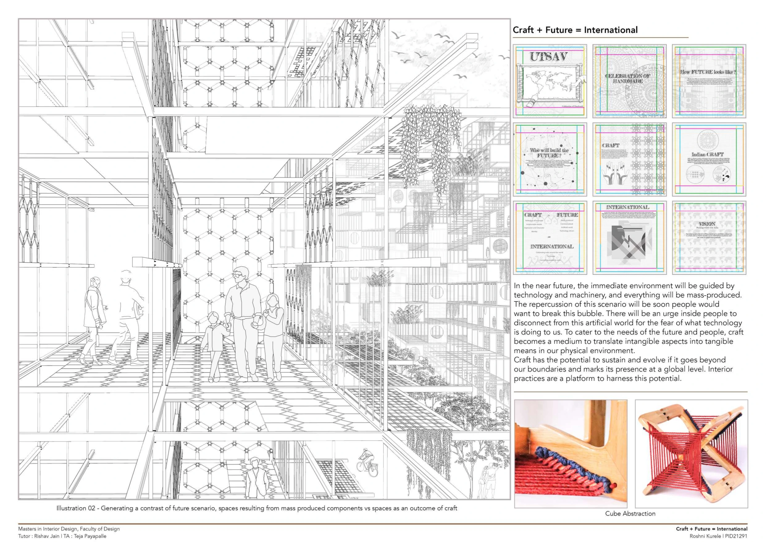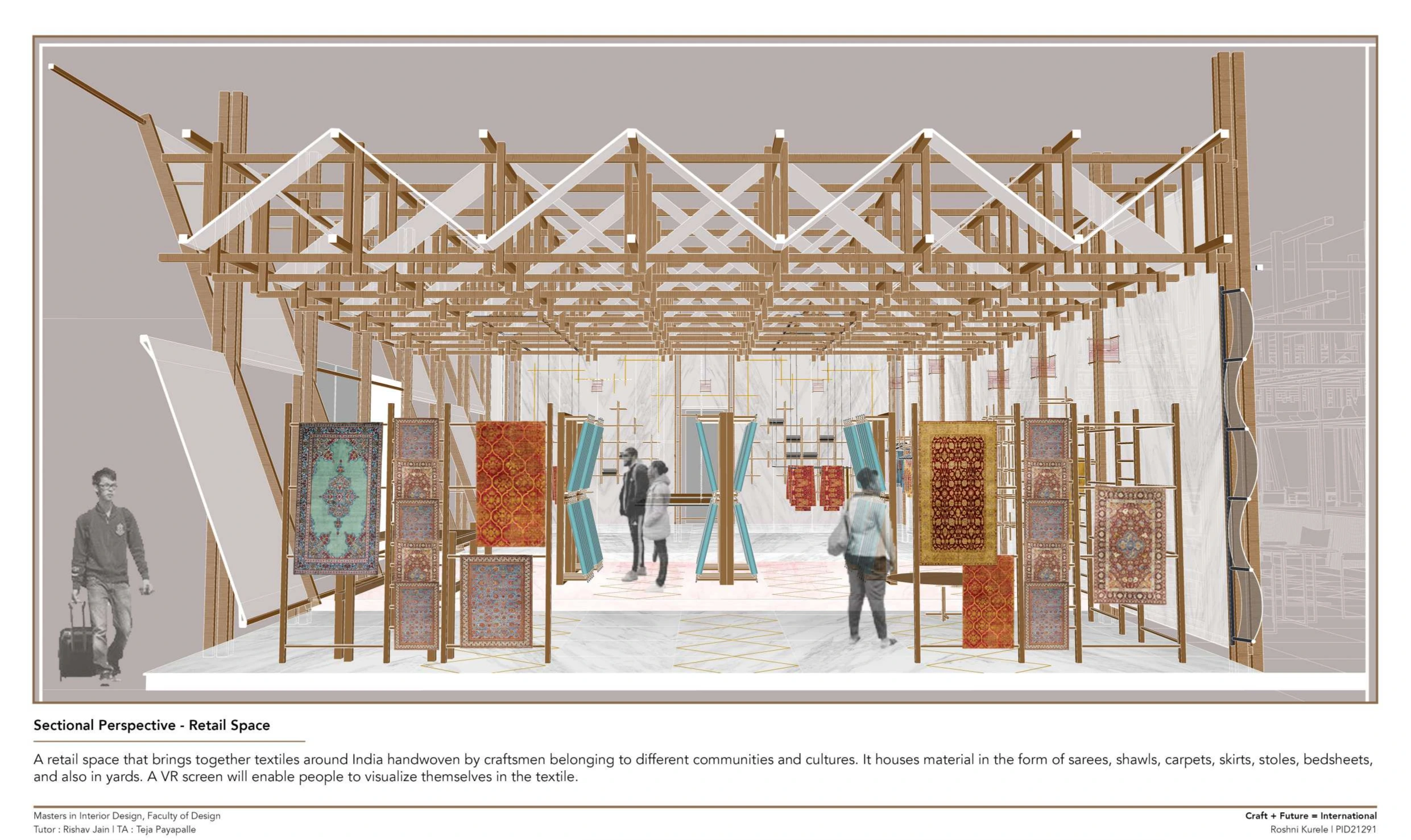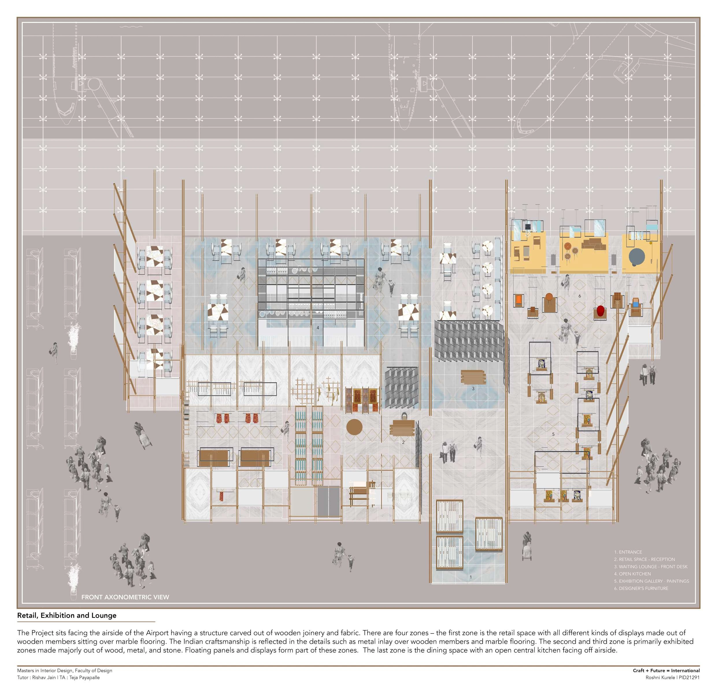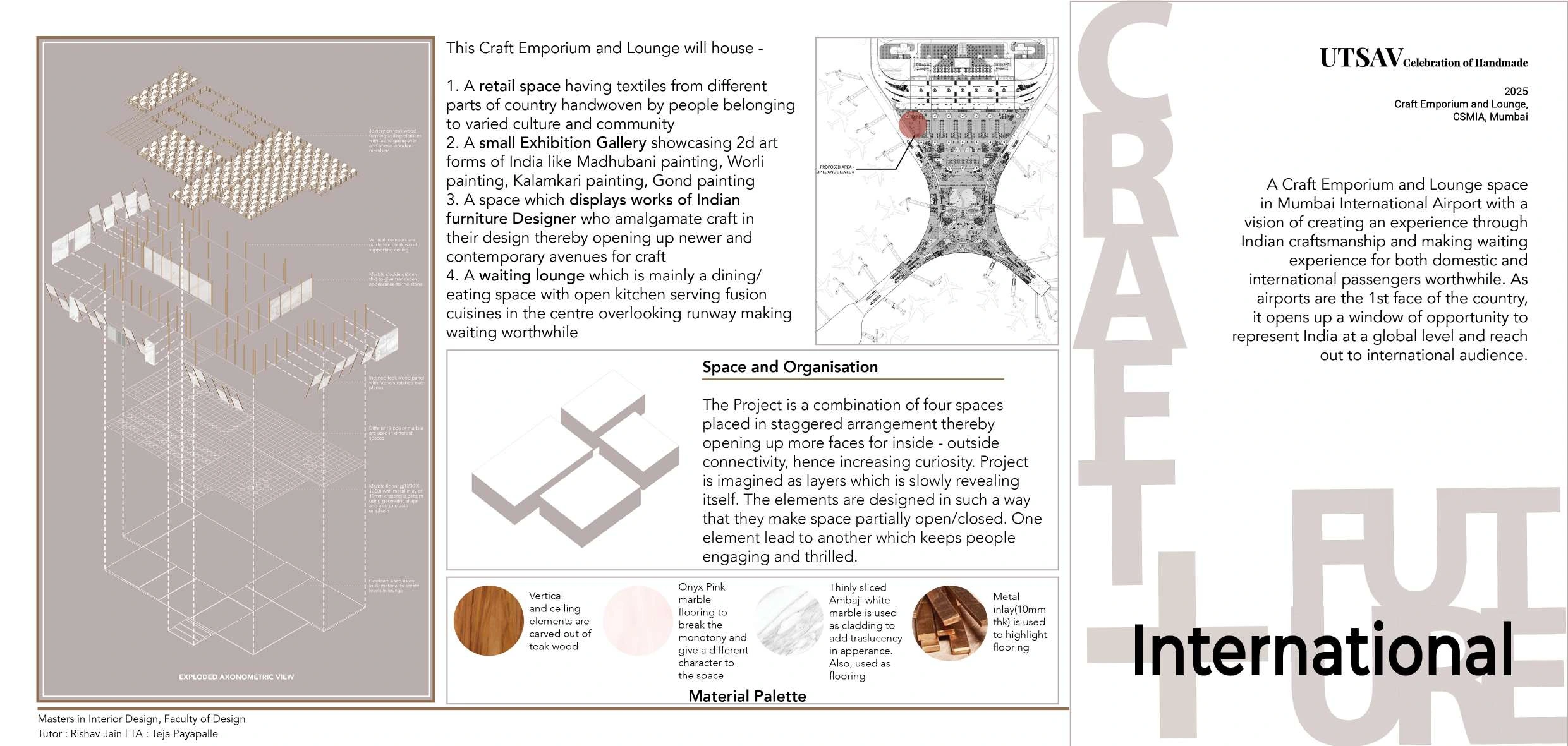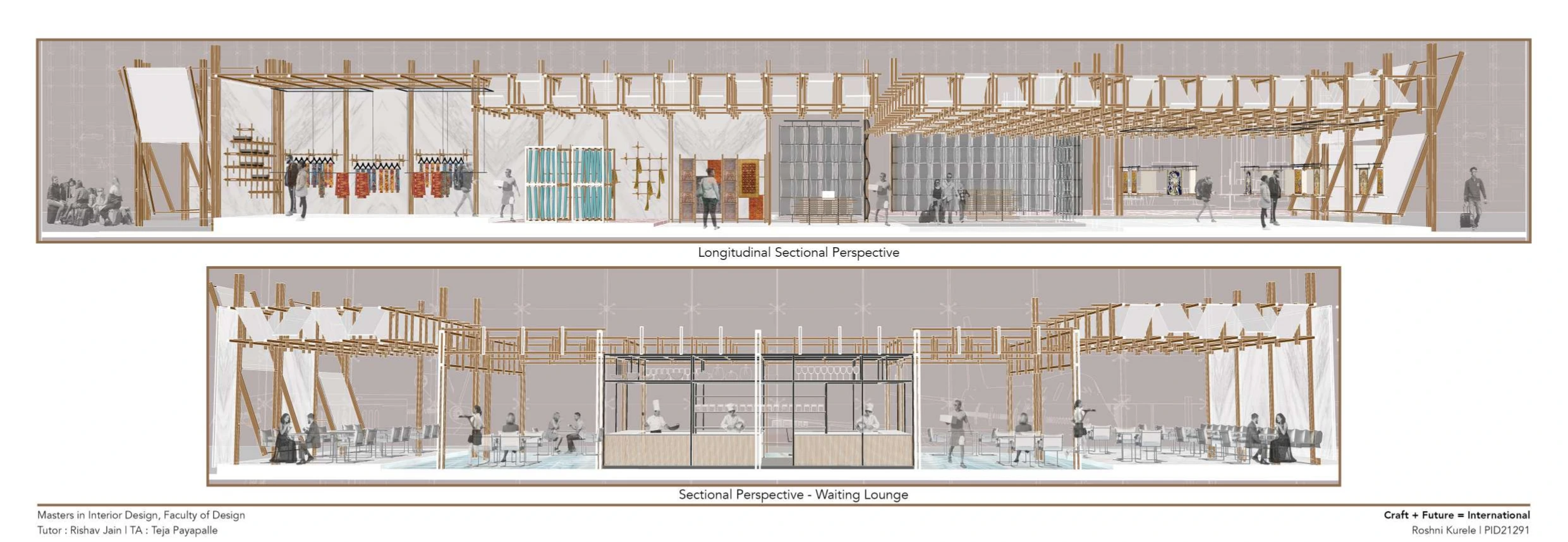 Craft emerged out of necessity and it’s an outcome of human consciousness and knowledge. Over the years, craft grew in different spheres but for craft to sustain, traditional craft skills and techniques need immediate intersection with design and reach out at the global level. The Project proposed is a Craft Emporium and Lounge in Mumbai International Airport with a vision of carving a space through Indian craftsmanship and making the waiting experience worthwhile. As airports are the 1st face of the country, it opens up a window of opportunity to reach out to the international audience.